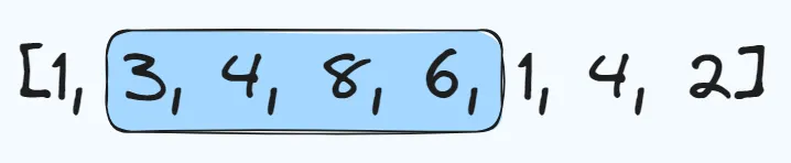 Let’s say we’re given the same array as before again, [1, 3, 4, 8, 6, 1, 4, 2].