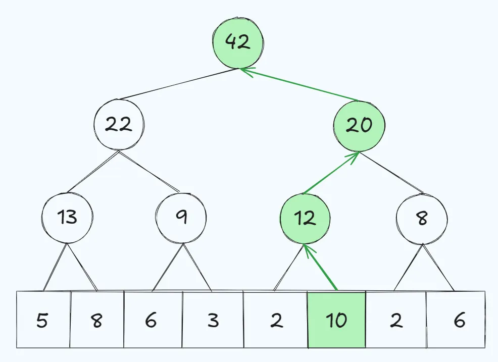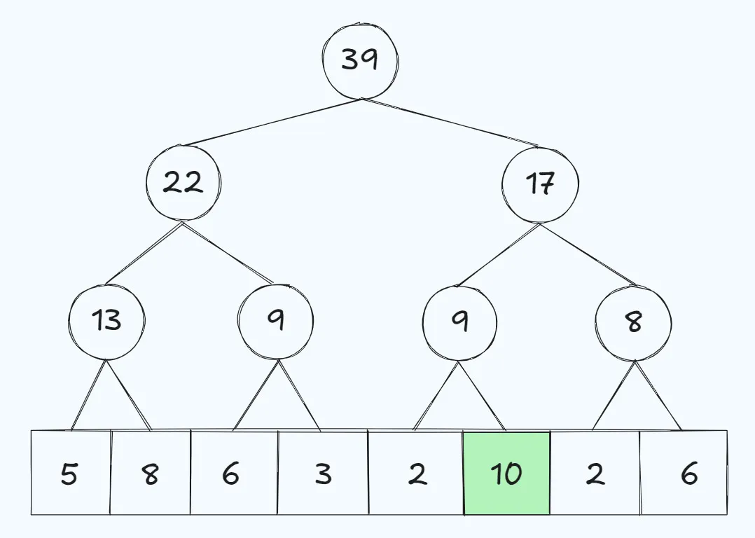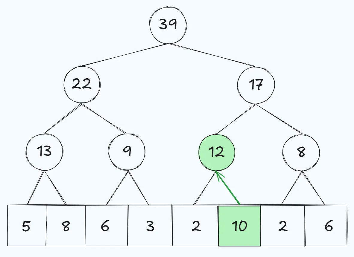 Let’s say we want to update the value at index 5 with value 7 to be a 10