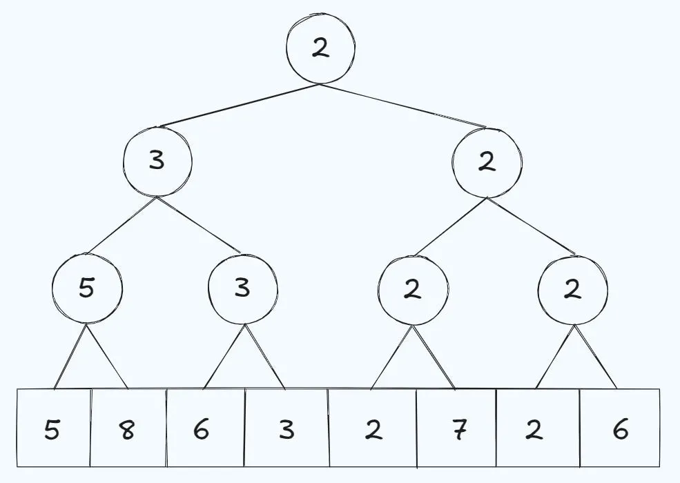 For minimum queries here’s what the tree would look like using the original array: